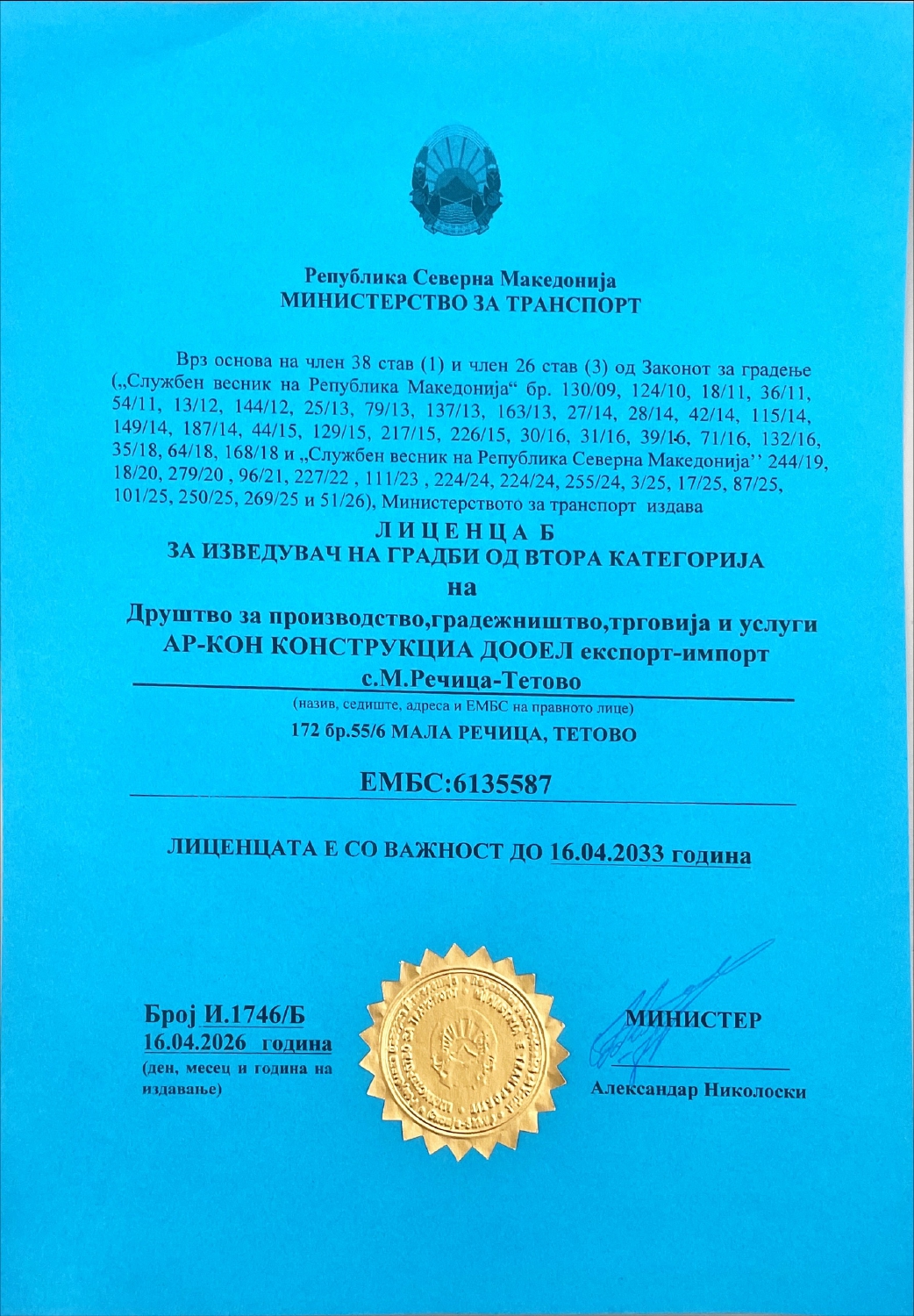 Според договорениот рок започнуваме со работа, со целосна посветеност и професионален пристап.